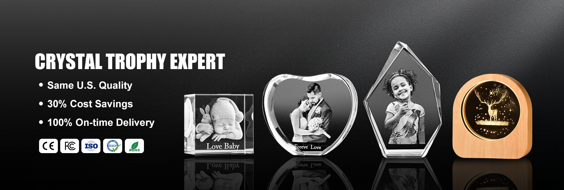 Tinh Thể Nhà Cung Cấp Nhà Máy Giá Tùy Chỉnh In Màu Trống Tinh Thể Gỗ Trophy Khắc Laser Tinh Thể Khối Giải Thưởng